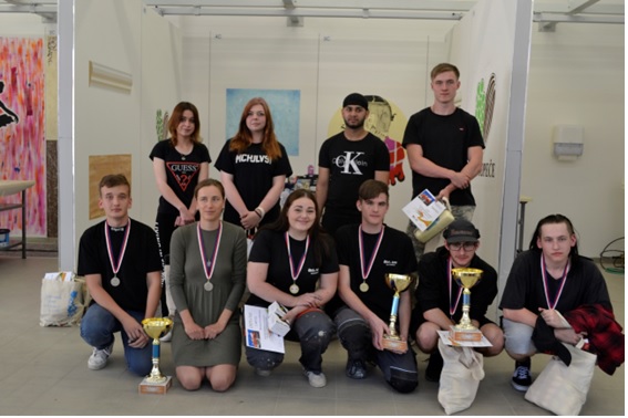 Klání se zúčastnilo pět škol – SOU Uherský Brod, SOU Hlučín, SOŠ Kyjov, SOU Brno a SOŠ a SOU Hustopeče. Každou školu reprezentovali dva zástupci, od nás to byli žáci 3. ročníku Malíř a lakýrník Hynek Toman a Denisa Danhoferová. V povinné části zadání měli soutěžící namalovat plastickou římsu a fládr, logo Hustopečí s nápisem „Hustopeče – srdce vinic a mandloní „. Dále jim byl ponechán prostor na vlastní vyjádření a fantazii, zde šlo o tzv. volnou tvorbu. Naši žáci úspěšně zvládli povinné zadání a na volnou tvorbu si vybrali siluetu baletky na barevném pozadí. Malba se jim velmi povedla a zaslouženě získali 1. místo v soutěži.